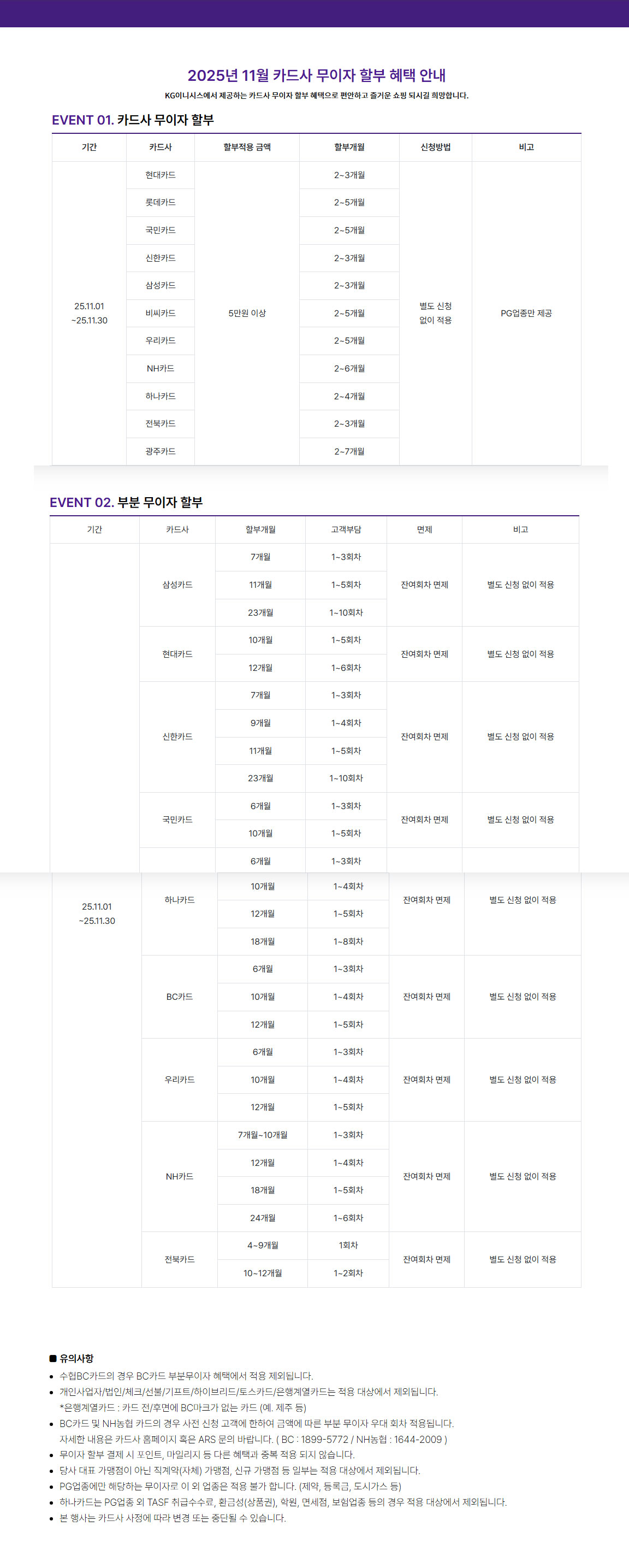 2025년 11월 카드사 무이자 할부 혜택 안내